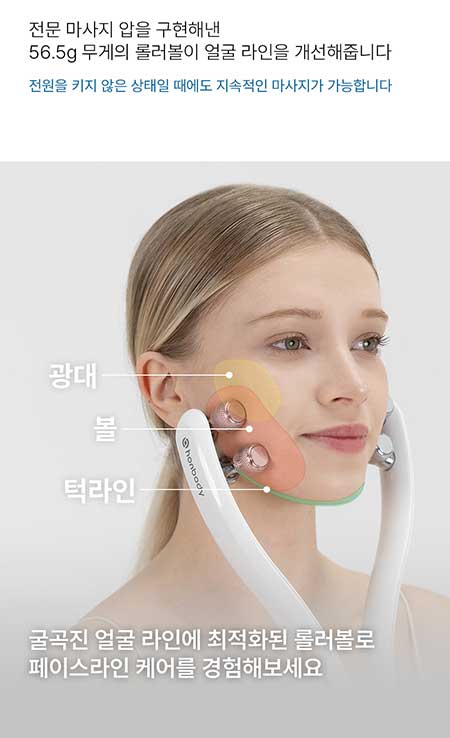 혼바디 브이롤러 EMS 마사지기는 혼바디라는 뷰티 전문 회사에서 만든 전자 마사지기입니다. 이 독특하고 혁신적인 제품은 V자형 롤러를 사용하여 사용자의 근육에 깊은 압력을 가해 탁월한 마사지 경험을 제공합니다. 이런 구조의 마사지 롤러는 피부와 근육에 보다 섬세한 마사지를 가능하게 합니다.