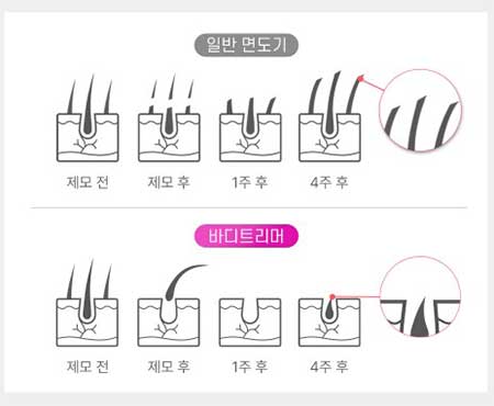 - 면도날 제모 방식은 잘못 사용하면 상처를 입을 수 있습니다.